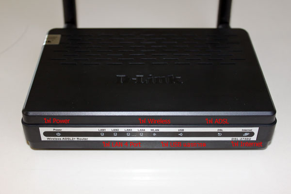 2. ด้านหน้า มีไฟบอกสถานะการทำงานครบทุกฟังก์ชั่น Power, LAN, Wireless, USB, ADSL, Internet